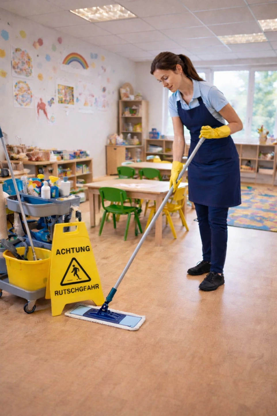 Reinigung von Gruppenräumen, Sanitärbereichen und Gemeinschaftsflächen – zuverlässig und kindgerecht umgesetzt.